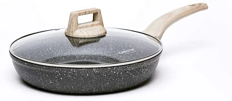 Sartén antiadherente CAROTE, sartén antiadherente de granito con tapa de vidrio, sartén para huevos, sartenes para tortillas, sartén de chef con utensilios de cocina de piedra, sin PFOA (granito clásico, 10 pulgadas)