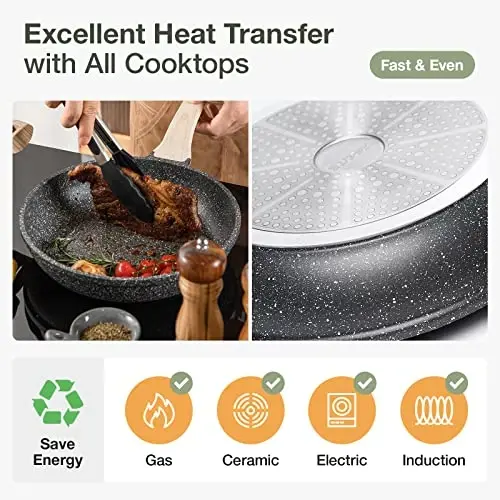 Sarten antiadherente CAROTE, sarten antiadherente de granito de 8 pulgadas con tapa de vidrio, sarten para huevos, sartenes para tortillas, sarten de chef con utensilios de cocina de piedra, sin PFOA (granito clasico, 8 pulgadas)