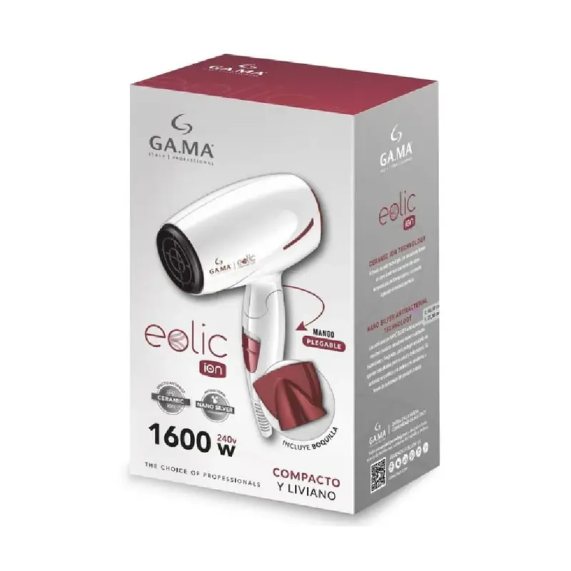 SECADOR DE MANGO PLEGABLE, MUY COMPACTO Y ERGONÓMICO. IMPLEMENTADO CON DOS VELOCIDADES Y DE BAJO NIVEL DE RUIDO. CERAMIC ION TECHNOLOGY A TRAVÉS DE ESTA TECNOLOGÍA, LOS SECADORES TIENEN UN CONO CERÁMICO QUE TRANSMITE ALTAS TEMPERATURAS DE FORMA RÁPIDA Y CONSTANTE, LOGRANDO UN SECADO PERFECTO. LAS PARTÍCULAS DE NANO SILVER ANTIBACTERIAL, QUE RECUBREN NUESTROS SECADORES, TIENEN CUALIDADES BACTERICIDAS Y FUNGICIDAS PARA PROTEGER EL CABELLO DE AGENTES PERJUDICIALES PARA SU SALUD Y BRILLO NATURAL. SU ACTIVIDAD ES CONTINUA, DURADERA Y NO SE ELIMINA A TRAVÉS DE LA LIMPIEZA DEL PRODUCTO TRATADO.CARACTERÍSTICAS:-MANGO PLEGABLE-POTENCIA 1600 W-ULTRA COMPACTO-DOS VELOCIDADES-SUPER LIVIANO-ERGONÓMICO-CABLE DE 1.65-BAJO NIVEL DE RUIDO-ANILLO PARA COLGAR-INCLUYE BOQUILLA
