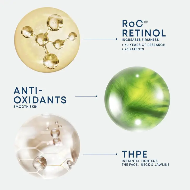- RESULTADOS COMPROBADOS: una fórmula concentrada con retinol avanzado y antioxidantes para reducir visiblemente las líneas y aumentar la elasticidad. El THPE reafirmante actúa para aumentar la firmeza de la piel, lo que da como resultado un aspecto contorneado de forma natural. Se ha demostrado clínicamente que suaviza la piel al instante. EN 4 SEMANAS: el 94% tenía una piel visiblemente más firme.