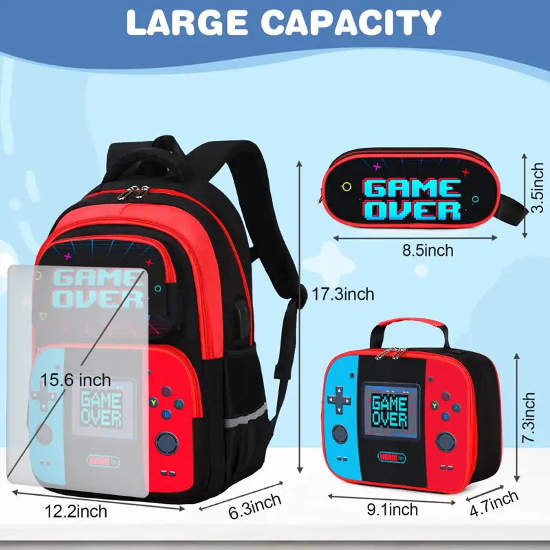 Set De Mochila Bevalsa Game Over Con Puerto De Carga Usb Rojo
