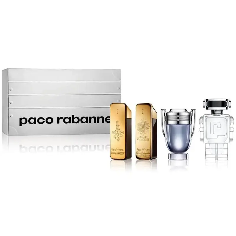 Set de regalo de perfume para hombre, tamaño viaje, de Paco Rabanne- Este delicioso set de regalo de 4 piezas de Paco Rabanne incluye varios artículos de lujo fabricados en Francia- Eau de toilette Mini Splash de One Million, 0.17 onzas- One Million Eau De Parfum Mini Splash, 0.17 onzas- Eau de toilette Invictus Mini Splash, 0.17 onzas- Eau de toilette Phantom Mini Splash, 0.17 onzas
