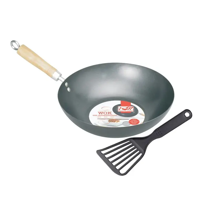 *Medidas:8cm x 29.5 cm x 46.5cm 30 cm de DiametroEspatula 1cm x 8cm x 30cm- Material: chapa con antiadherente con mango.- Marca: Nouvelle Cuisine- Origen: China- Incluye Espatula Antiadherente Ideal para saltear carnes, verduras, legumbres, mariscos y masPermite revolver los alimentos sin que se vuelque o desborde.