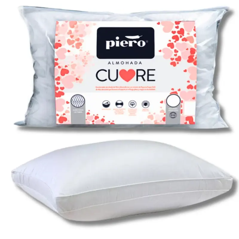 Ahorrá dinero con el combo de dos almohadas!Además, aprovechas el envio GRATIS!La almohada Piero Cuore es una almohada de fibra que posee un corazón de espuma de alta densidad. Asegura una buena altura a la vez de garantizar una sensación placentera.Excelente soporte y rebote.Características:- Almohada de fibra con corazón de espuma de alta densidad.- Funda de tela percal.- Máxima vida útil.- Lavable.- Antialérgica.- Antibacterial.Medidas: 70x40cm