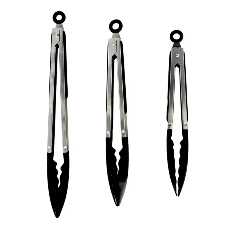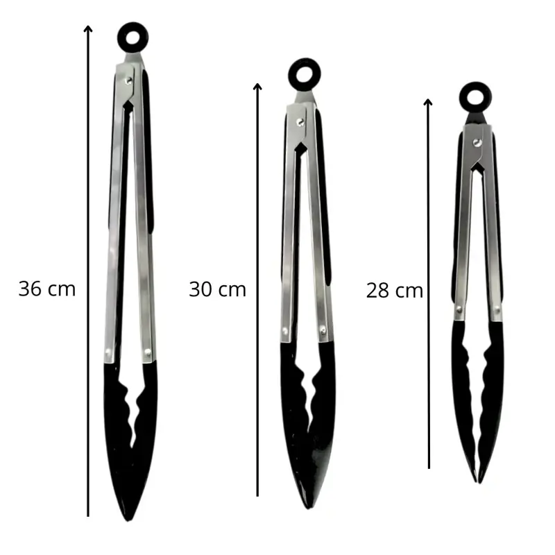 Set de pinzas multiusoEl set incluye:-1 pinza multiuso de 30 cm-1 pinza multiuso de 25 cm-1 pinza multiuso de 23 cmLas Pinzas Multiuso Acero Inoxidable son el complemento perfecto para tu cocina. Con su material de acero inoxidable de alta calidad, garantizan resistencia y durabilidad. Su punta de nylon protege tus utensilios de cocina y evita rayones en tus sartenes y ollas. Además, su diseño grande las hace ideales para manipular alimentos de diferentes tamaños.Estas pinzas multiuso son versátiles y prácticas, perfectas para asar, voltear, servir y más. No pierdas la oportunidad de tener estas pinzas de calidad en tu cocina.