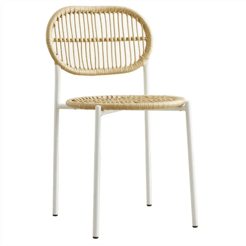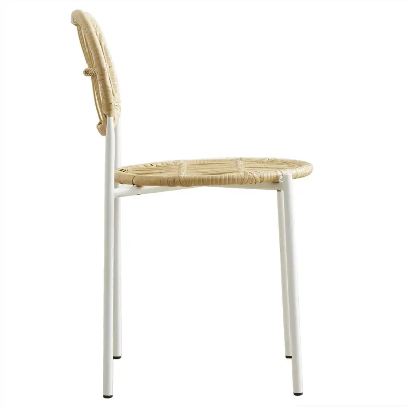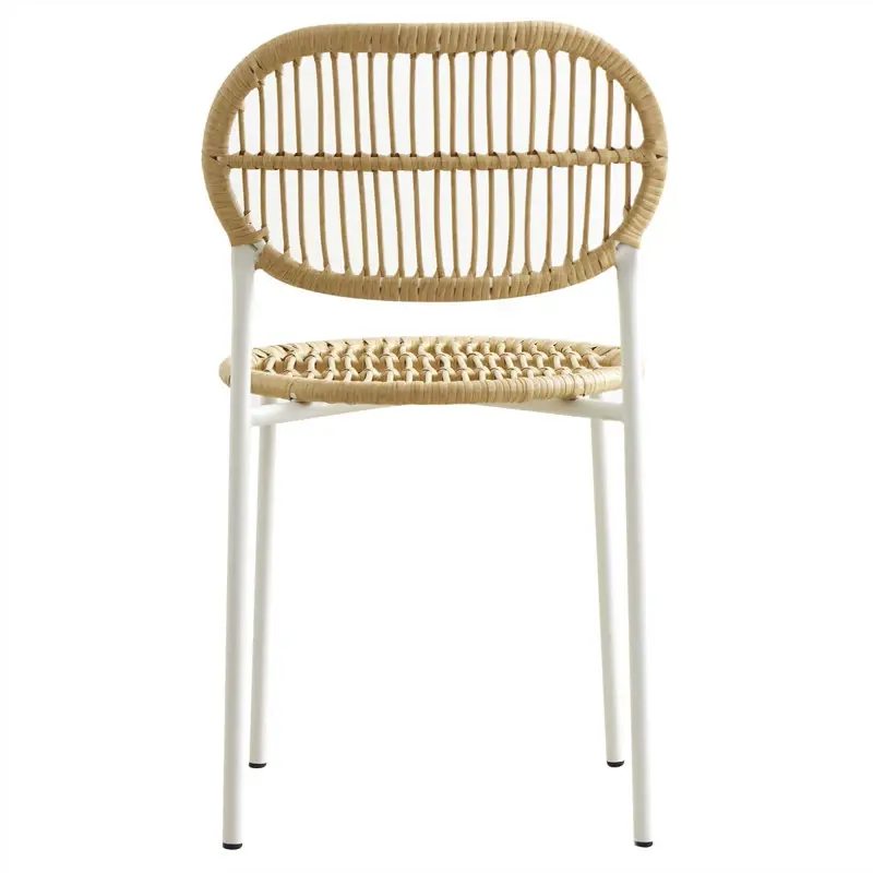 DescripciónSILLA BAMBOOMEDIDAS:Ancho: 44cmAlto total: 79cmAltura del asiento: 46cmProfundidad del asiento: 44cmMateriales:ESTRUCTURA Y PATAS DE HIERRO PINTADAS AL HORNO + ASIENTO Y RESPALDO TEJIDOS EN HILO SINTÉTICO SIMIL BAMBÚ.