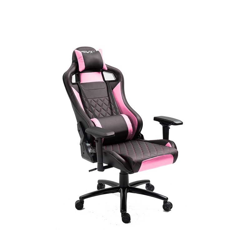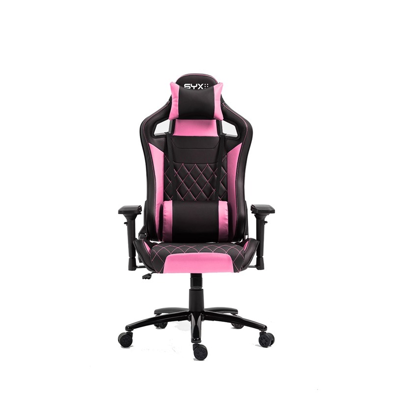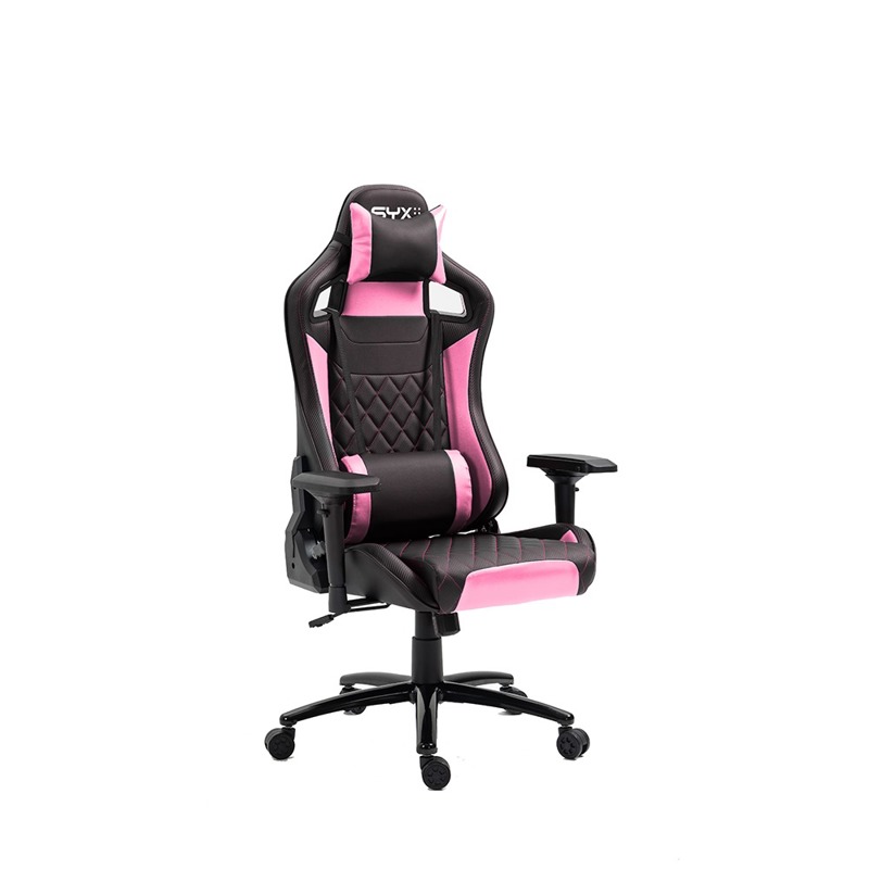 SILLA GAMER CH-451, color Rosa, asiento espuma moldeada+ respaldo espuma nueva, PVC+compuesto grueso, estructura metálica, apoyabrazos 4D, mecanismo mariposa, 100mm gaslift clase 3 que pasa la certificación SGS, base de metal de 350mm, ruedas de juego de PU, cojín de apoyo de cabeza y lumbar, con reposapiés, bordado de color/logo personalizado.MARCA SYX.Peso admitido: Maximo 115 KG