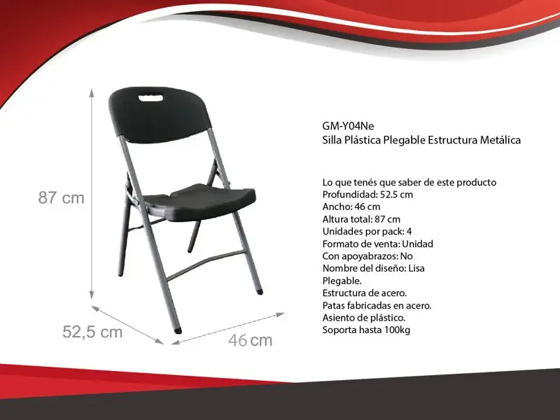 "Transformá tu espacio exterior con la Silla Plástico Plegable Skyhome, la opción perfecta para quienes buscan comodidad, durabilidad y estilo en sus jardines, terrazas o eventos al aire libre. Su diseño funcional y elegante es ideal para cualquier ocasión, brindando resistencia y confort en cada uso. ?? Características principales: Estructura Metálica Robusta: Hecha de acero resistente, soporta hasta 100 kg para una mayor durabilidad. Asiento de Plástico: Fácil de limpiar y mantener, ideal para el uso exterior. Diseño Plegable: Fácil de almacenar y ahorrar espacio cuando no se está usando. Dimensiones: 46 cm de ancho, 83 cm de altura total y 57 cm de profundidad, adaptándose a diferentes entornos y necesidades. Ergonómica: Aunque no tiene apoyabrazos, su diseño garantiza un soporte cómodo para largas horas al aire libre. Ideal para Eventos y Jardines: Perfecta para reuniones y actividades al aire libre. Set de 4 Unidades: El precio es por un set de 4 sillas para máxima conveniencia. ?? Producto nuevo en caja. ¡Disfrutá de la comodidad y estilo con la Silla Plegable Skyhome en tu próximo evento o reunión!"