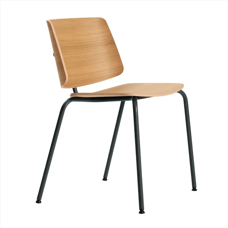 El nombre de esta silla revela el núcleo del proyecto. De hecho, es precisamente en el soporte en forma de T del respaldo donde se ha centrado la atención. En la raíz del concepto, está claramente la recuperación de un estilo clásico, propio del diseño de los años 50 y 60. Las dos madera unidas por la estructura metálica son una imagen que cada uno de nosotros tiene en su memoria, desde ejemplos cotidianos como sillas escolares o sillas de bistró nórdico hasta obras maestras inmortales de Eames.