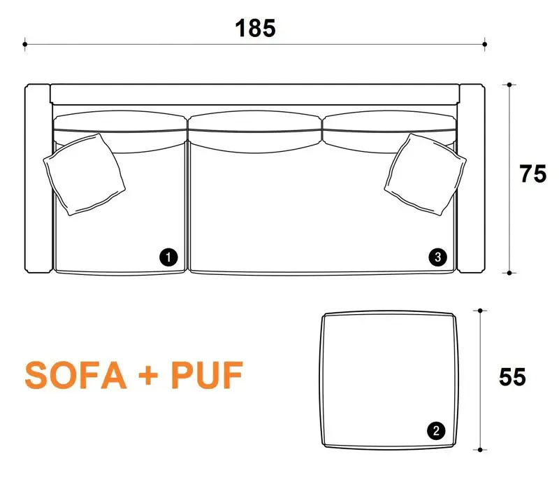 - Puf: 55 x 55 cm