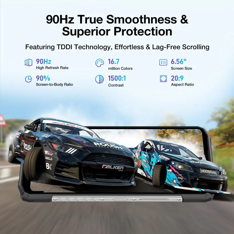 - Pantalla HD de 6.56 pulgadas + 90 Hz y pantalla trasera personalizada de 1.54 pulgadas: experimenta imágenes vibrantes en la pantalla IPS HD+ de 6.56 pulgadas del teléfono inteligente DOOGEE con una frecuencia de actualización suave de 90 Hz, perfecta para transmisión, navegación y juegos. El teléfono resistente DOOGEE también cuenta con una pantalla trasera personalizable única de 1.54 pulgadas que te da acceso instantáneo a la hora, la fecha, el estado de la batería y más, sin despertar la pantalla principal. Diseñado para mayor comodidad y productividad, este resistente teléfono celular mantiene tus elementos esenciales al frente y al centro, todo en una construcción duradera y lista para exteriores.