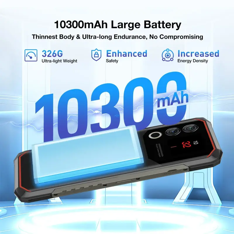 - Batería de 10,300 mAh con diseño delgado y ligero: el teléfono inteligente resistente DOOGEE Blade10 Max está diseñado para la resistencia, con una potente batería de 10,300 mAh que mantiene su funcionamiento en temperaturas extremas de -40 °F a 158 °F. Este teléfono resistente soporta carga rápida de 18 W y carga inversa OTG, lo que te permite encenderlo rápidamente o cargar otros dispositivos sobre la marcha. A pesar de su enorme batería, el robusto teléfono celular se mantiene elegante y fácil de transportar: mide solo 0.354 in en su punto más delgado y pesa solo 11.5 oz (326 g). El teléfono impermeable es el equilibrio perfecto de dureza, rendimiento duradero y portabilidad diaria.