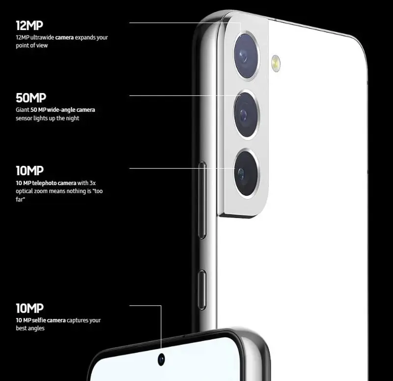 - Cámara trasera: 50 MP, f/1.8 + 10 MP, f/2.4 + 12 MP, f/2.2, cámara frontal: 10 MP, f/2.2, Android 12, One UI 4.1