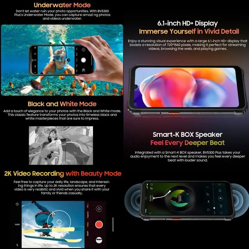 Teléfono con procesador MediaTek Helio G72 octa-core de 2,0 GHz. Pantalla de 6,1 pulgadas con resolución de 720 x 1560 píxeles y tasa de refresco de 60 Hz. Sistema operativo Android 13. Incluye sensores de proximidad, luz, G, brújula electrónica y magnético. Memoria de 8GB de RAM y 128GB de almacenamiento interno, expandible hasta 1 TB mediante tarjeta TF (no incluida). Soporta doble SIM de tipo nano.