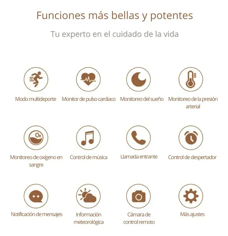- Características de salud y fitness: para que puedas estar al tanto de tu bienestar.