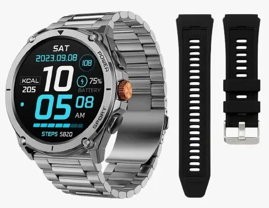 Smartwatch JD Everest Plateado Pantalla 1.43" Malla Metalica + Malla adicional Silicona Negra