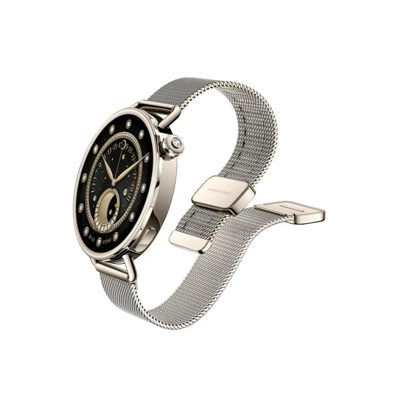 La edición Gold presenta un diamante de laboratorio encastrado en la corona y una correa milanese: cada detalle está elaborado para reflejar una elegancia refinada.