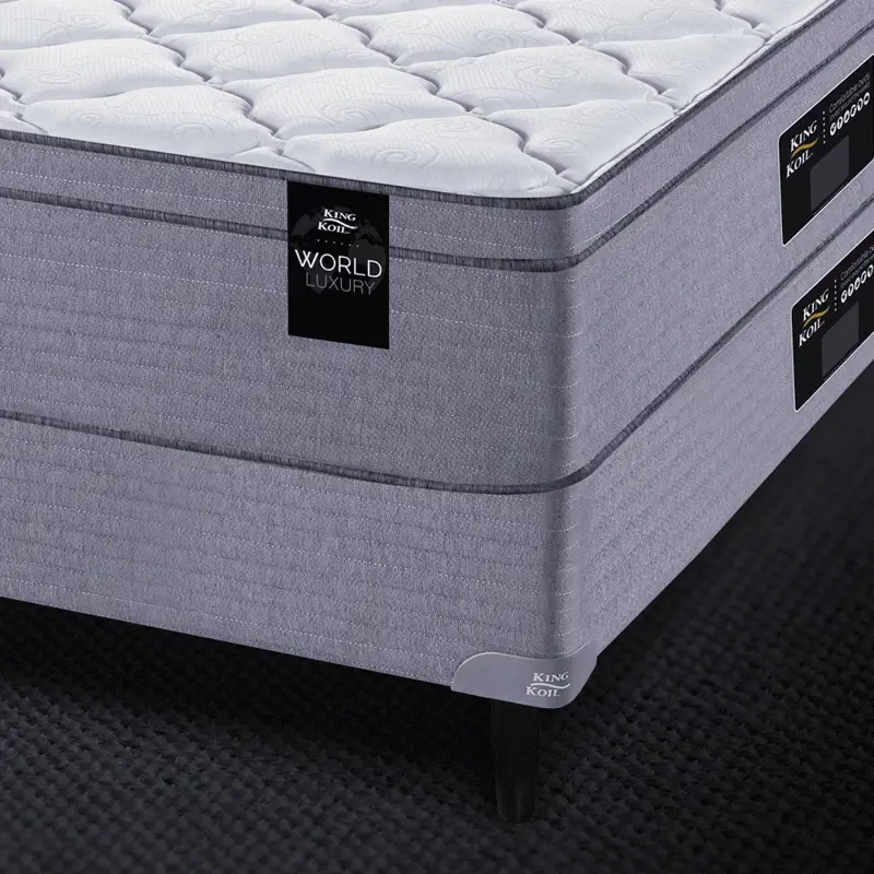 El sommier y colchón de espuma Bradford Queen Size de King Koil es ideal para los que prefieren descansar sobre espumas premium. Combina capas de espuma de alta densidad con un diseño moderno y elegante. Su delicada superficie en tejido de punto se destaca sobre un exclusivo europillow para aportar suavidad y máximo confort.A este modelo se suma una resistente base de Sommier World Luxury.