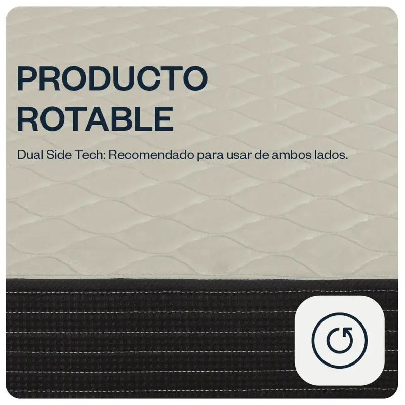 - Rotar el producto de pies a cabeza cada 15 días, y de lado a lado (boca arriba a boca abajo) cada 30 días. Esto asegurará la vida útil declarada y permitirá un desgaste parejo de los materiales.