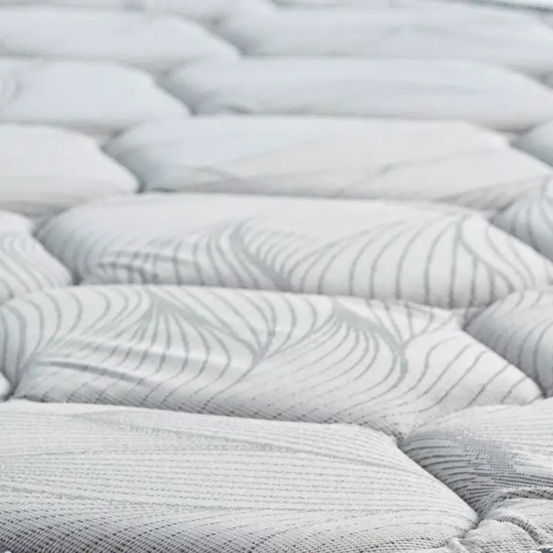 Cubierta superior tapizada en tela antideslizante y bandas laterales tapizadas en jackard matelasseado en composse con colchón.