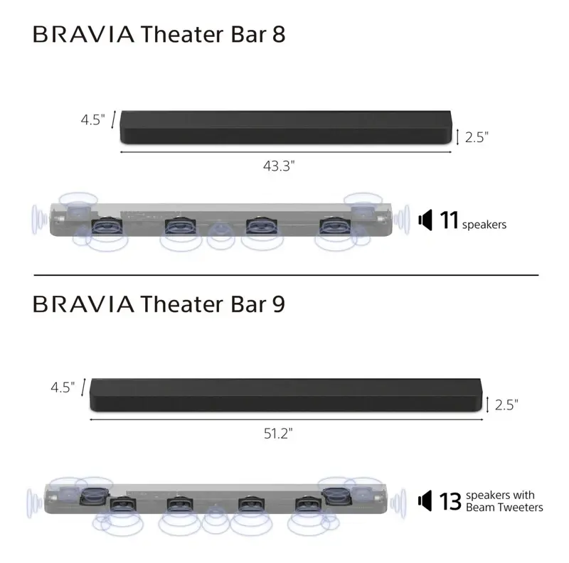 BRAVIA Theater Bar 9 HT-A9000 Barra de sonido con 13 unidades de altavoces, Dolby Atmos, DTS:X, IMAX mejorado, sistema de sonido envolvente inalámbrico para TV