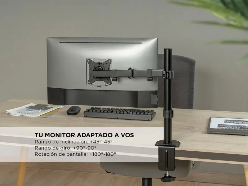 Acerca de Soporte Brazo de Monitor Gadnic Soporte Articulado 17” a 32” Optimiza tu Espacio y Ergonomía con el Soporte Articulado para Monitor Gadnic ¿Estás cansado de tener tu monitor ocupando espacio en tu escritorio? El Soporte Brazo de Monitor Gadnic es la solución perfecta para liberar espacio y mejorar tu comodidad mientras trabajas o juegas. Diseñado para monitores de 17" a 32", este soporte articulado brinda una experiencia ergonómica que transformará tu estación de trabajo. Imagina un escritorio ordenado y despejado, donde puedas mover y ajustar tu monitor con facilidad. El Soporte Brazo de Monitor Gadnic te permite elevar, inclinar, girar y ajustar la posición de tu monitor según tus preferencias. Olvídate de posturas incómodas y dolores de cuello. La instalación es rápida y sencilla, sin necesidad de herramientas complicadas. Una vez montado, este soporte articulado ofrece una capacidad de carga sólida y segura, manteniendo tu monitor en su lugar sin temor a caídas accidentales. Además, su diseño moderno y elegante complementa cualquier entorno, ya sea en tu oficina en casa o en tu espacio de entretenimiento. Compatible con una amplia gama de monitores, el Soporte Brazo de Monitor Gadnic es versátil y se adapta a tus necesidades. Libera espacio en tu escritorio para una mayor organización y productividad. Disfruta de una vista panorámica y una experiencia de juego envolvente gracias a su capacidad de rotación y ajuste. No comprometas tu comodidad ni la eficiencia de tu espacio de trabajo. Eleva tu experiencia informática con el Soporte Articulado para Monitor Gadni