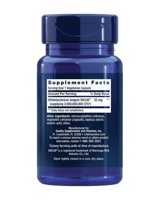 Life Extension Bifido GI Balance: suplemento probiótico Bifidobacterium Longum BB536 (2 mil millones de CFU), favorece la salud intestinal y digestiva, sin gluten, vegetariano, 60 cápsulas, LA BACTERIA