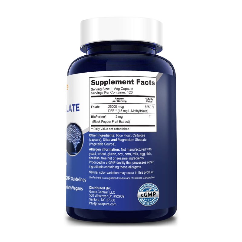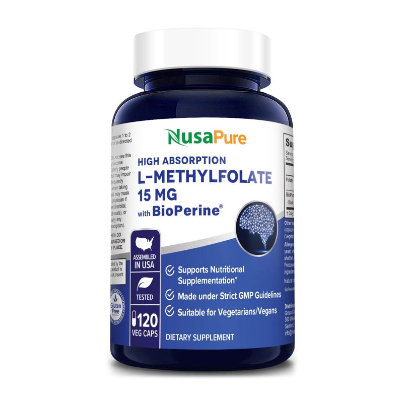 Formulación de metilfolato- 15 mg de metilfolato más 25 000 mcg de folato de bioperina por porción.- Nuestras formulaciones están elaboradas con ingredientes y cuidados de alta calidad.- 120 cápsulas vegetarianas para un suministro de 120 días. Formulación vegana/vegetariana, sin gluten- Fabricado en una instalación registrada por las cGMP con altos estándares.- Formulación avanzada y superior de benfotiamina que utiliza fuentes e innovación de alta calidad.