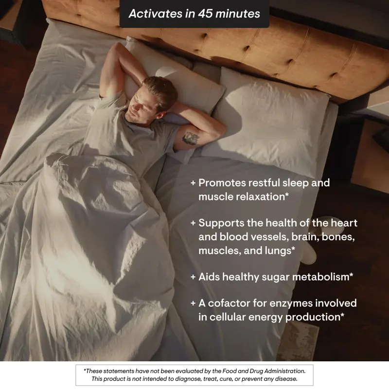 - Bienestar de todo el cuerpo: el magnesio, un mineral crucial porque está involucrado en más de 600 de las reacciones enzimáticas del cuerpo, apoya el cerebro, los huesos, los músculos y los pulmones, así como proporciona apoyo para un metabolismo saludable*