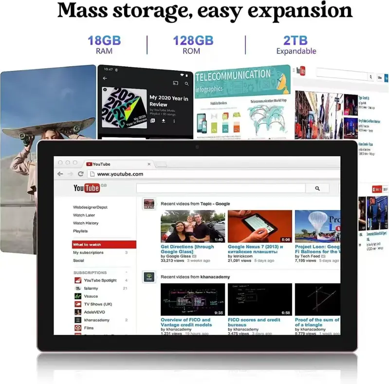 - ?18 GB de RAM+128 GB ROM+2 TB expandible? La tablet PC Android 15 incorpora una potente combinación de almacenamiento de 18 GB de RAM (6 GB + 12 GB logrado a través de la tecnología de expansión) y 128 GB de ROM, viene con un rendimiento ultra alto y bajo consumo de energía de 2.0 GHz, logra velocidades de funcionamiento y almacenamiento más rápidas y estables. Además, se puede ampliar hasta 2TB con una tarjeta microSD (tarjeta no incluida) para aún más almacenamiento.