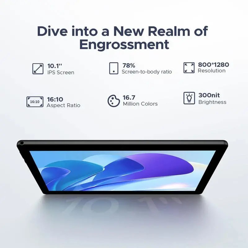 - La tableta DOOGEE U10 de 10 pulgadas cuenta con un cuerpo compacto de 9.65 x 6.41 x 0.38 pulgadas y un diseño ligero de 1.13 libras, cabe fácilmente en bolsas para viajes de negocios o viajes diarios. Su carcasa lisa ofrece una sensación premium mientras resiste arañazos diarios y impactos menores. Disponible en gris grafito, morado lavanda y azul dinámico, la tableta DOOGEE combina un perfil delgado con un diseño de agarre cómodo para manejar las necesidades de trabajo, entretenimiento y estudio sin esfuerzo.