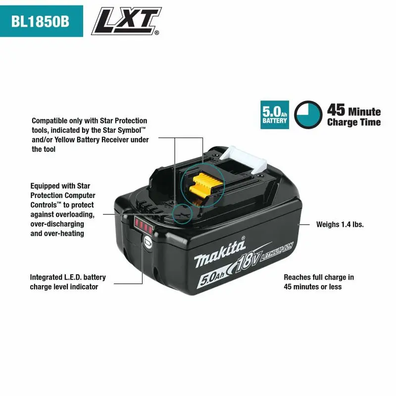 - Motor sin escobillas fabricado por Makita con dos velocidades, velocidad variable (0-450 RPM y 0-1,400 RPM) para una máxima eficiencia y una amplia gama de aplicaciones de perforación