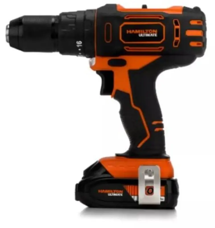 TALADRO PERCUTOR ULT111 HAMILTON ULT111 Taladro percutor Embrague de 16+3 posiciones Recubrimiento antishock. Caja de dos velocidades mec¦¡nica. Luz led autom¦¡tica. Motor brushed. Tipo de bater¦_a: Ion-Litio Tensi¦nn de bater¦_a: 20 V. Amperaje: 2.0/4.0 Ah. Tensi¦nn de cargador: 220 # 240 V ~ 50 Hz. Velocidad variable en baja: 0-450 rpm. Velocidad variable en alta: 0- 1650 rpm. Golpes por minuto en baja: 0- 7920 bpm. Golpes por minuto en alta: 0 # 29700 bpm. Configuraci¦nn de torque: 16 + 3. Torque m¦¡ximo: 45 N.m. Tama¦±o de mandril sin llave: 13 mm. Tipo de garant¦_a Limitada: 2 a¦±os Origen China