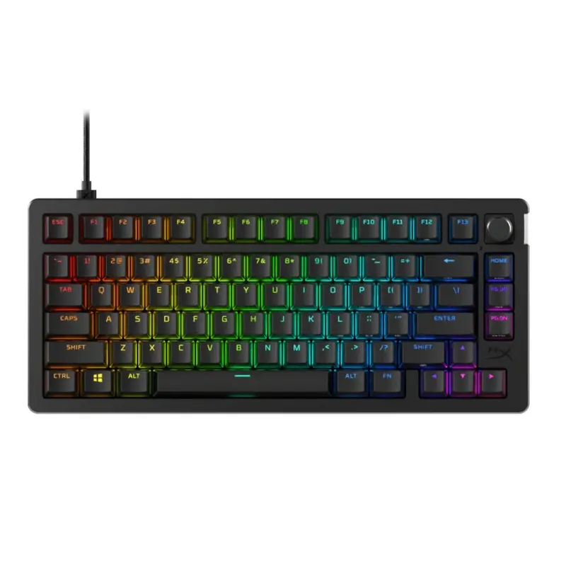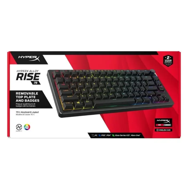 Teclado Gamer HyperX Alloy Rise 75%: La Personalización y Rendimiento que BuscasDescubre el HyperX Alloy Rise 75%, el teclado mecánico gaming diseñado para ofrecerte una experiencia de juego sin igual. Con su formato 75%, combina un tamaño compacto con todas las funcionalidades que necesitas.Características DestacadasUltrapersonalizable: Personaliza cada detalle con interruptores intercambiables en caliente y placas magnéticas. ¡Exprésate a tu manera!Sensor de luz ambiental: Ajusta automáticamente la iluminación del teclado según la luminosidad de tu entorno, para una experiencia óptima en cualquier situación.Teclado montado en junta: Disfruta de una estabilidad y suavidad excepcionales gracias a los interruptores lineales HyperX prelubricados, que soportan hasta 80 millones de pulsaciones.Control de volumen práctico: Un botón giratorio dedicado te permite ajustar o silenciar el volumen fácilmente durante tus partidas.Personalización Sin LímitesCon el HyperX NGENUITY, guarda hasta 10 perfiles directamente en el teclado. Esto te permite tener configuraciones de macros e iluminación listas para cada partida, donde sea que te encuentres.No esperes más y eleva tu experiencia de juego al siguiente nivel con el Teclado Gamer HyperX Alloy Rise 75%. ¡Destaca en cada partida!