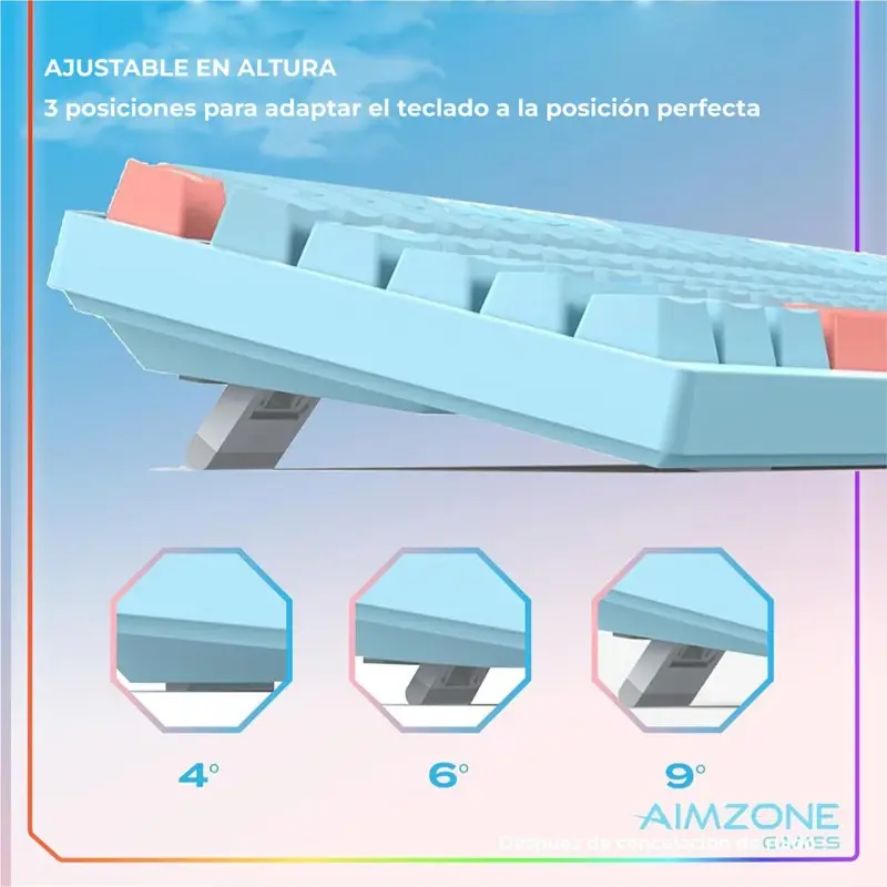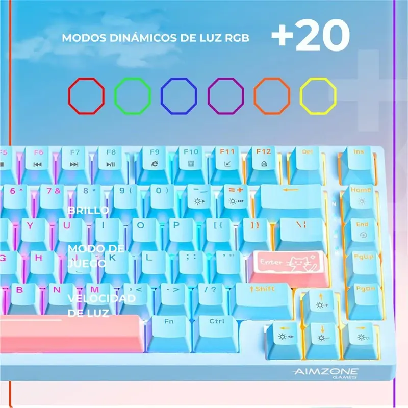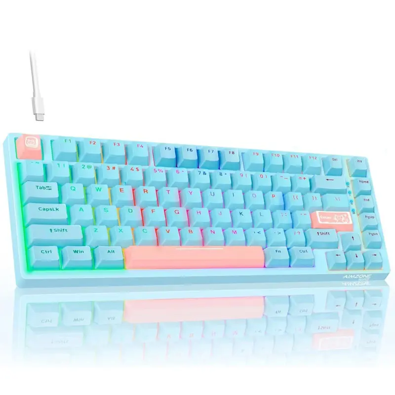 Teclado Mecánico Gamer RGB de 82 TeclasTipo de switch: Tawny (marrón) / Cyan (cian)Interfaz: USB con cableTamaño: Largo 323.5 mm × Ancho 133.5 mm × Alto 42 mm ±0.3 mmPeso: 760 g ±20 gColor: CelesteCompatibilidad: PC, Laptop, Tablet