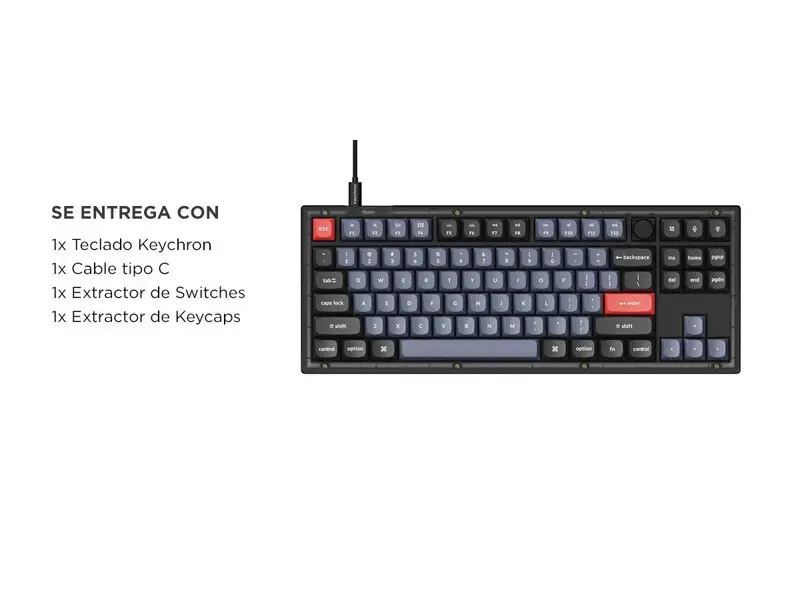 El Teclado Mecánico Keychron V3 de 87 teclas combina diseño compacto y tecnología avanzada, ideal para quienes buscan personalización total y una experiencia de escritura óptima. Su formato TKL (Tenkeyless), con un tamaño del 80%, se adapta a distintas situaciones, mientras que el soporte para QMK y VIA permite programar cada tecla y redefinir accesos directos, efectos de retroiluminación, y mucho más. Además, sus teclas PBT de doble disparo, junto con una almohadilla de silicona acústica e interruptores prelubricados, garantizan durabilidad y comodidad.