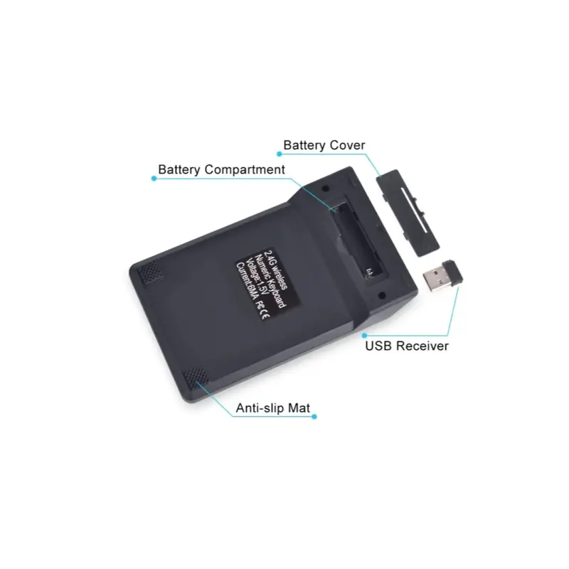 • El teclado viene con 18 teclas de las teclas numéricas 0-9, Supr, Intro, Bloq Num, Retroceso, +