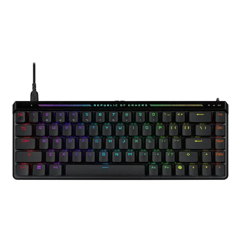 Teclado para juegos ROG Falchion Ace HFX del 65% con interruptores magnéticos ROG HFX, botón de activación rápida, frecuencia de sondeo de 8000 Hz, espuma amortiguadora de tres capas, soporte con junta de silicona, panel táctil y funda protectora