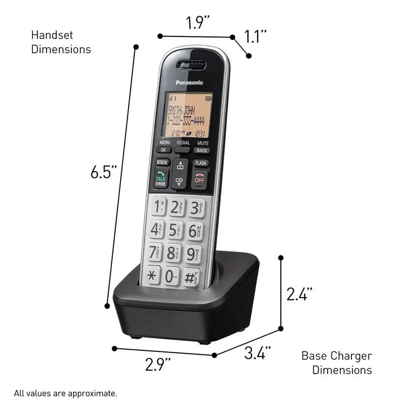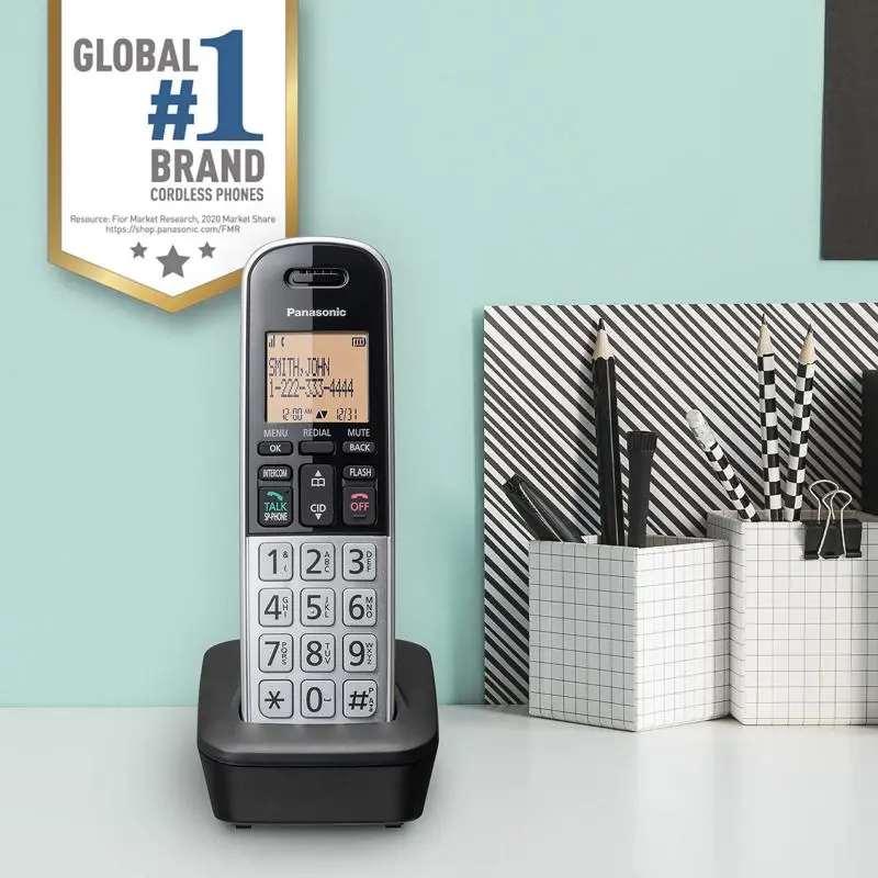 El teléfono inalámbrico compacto Panasonic KX-TGB810S es un teléfono esencial para cualquier hogar. Su cuerpo pequeño (3.4 pulgadas de alto x 2.9 pulgadas de ancho x 2.2 pulgadas de profundidad) cabe en cualquier lugar, y la base puede incluso montarse en la pared para una máxima comodidad. Su teclado intuitivo y su pantalla LCD retroiluminada garantizan que pueda ver y completar cada llamada con confianza. A pesar de su pequeño tamaño, el teléfono es increíblemente potente, con identificador de llamadas, bloqueo, agenda, rellamada y marcación rápida: todas las funciones que necesita al alcance de la mano. El modo Line Power mantiene este teléfono en funcionamiento incluso durante apagones temporales. La potente batería de larga duración diaria proporciona 180 horas en modo de espera y 9 horas en conversación. La tecnología DECT 6.0 garantiza la claridad de cada llamada, incluso cuando el teléfono se encuentra en una parte de la casa diferente a la de la base del teléfono.