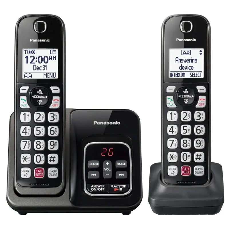 Panasonic KX-TGD832M - Teléfono inalámbrico con contestador, bloqueo de llamadas avanzado, identificación de llamadas bilingüe y pantalla de alto contraste fácil de leer, sistema expandible con 2
