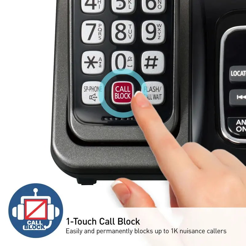- Bloqueo de llamadas avanzado: Bloqueo de llamadas automatizado prebloquea las llamadas automáticas; el bloque de llamadas de telemarketing le permite bloquear a las personas que llaman anunciadas; bloquear 1,000 más con el botón de bloqueo de llamadas de 1 toque en el teléfono