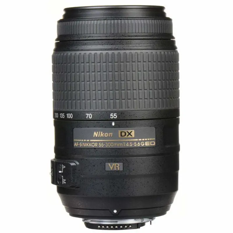 - El AF-S DX NIKKOR 55-300 mm f/4,5-5,6G ED VR es un teleobjetivo con zoom versátil diseñado para las cámaras réflex digitales Nikon de formato DX, que proporciona un impresionante rango focal equivalente a entre 82,5 y 450 mm. Diseñado para satisfacer las necesidades de los fotógrafos que buscan un mayor alcance, este objetivo resulta ideal para capturar sujetos distantes y utilizar aplicaciones de teleobjetivo. Su configuración óptica incluye dos elementos de dispersión ultrabaja y un elemento de alto índice de refracción, una combinación que se emplea estratégicamente para obtener
