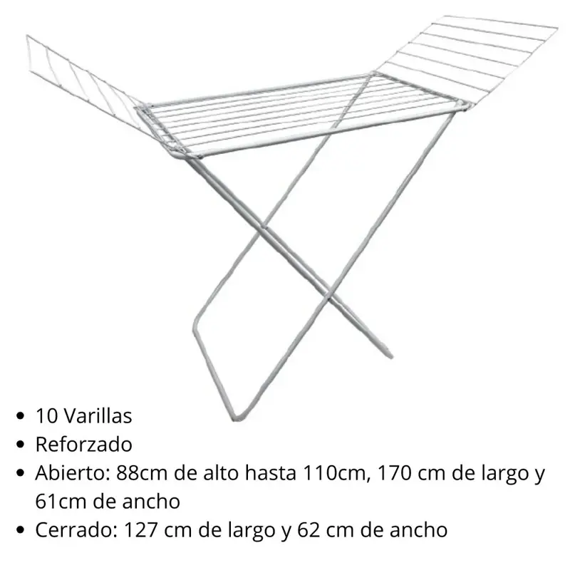 Tendedero Tender Con Alas Reforzado X 10 Varillas Plegable