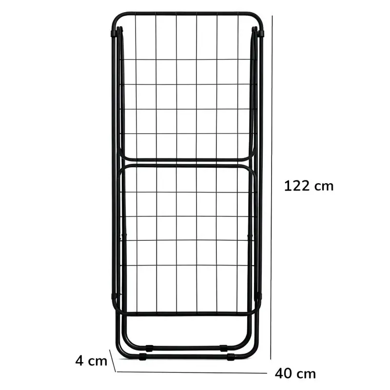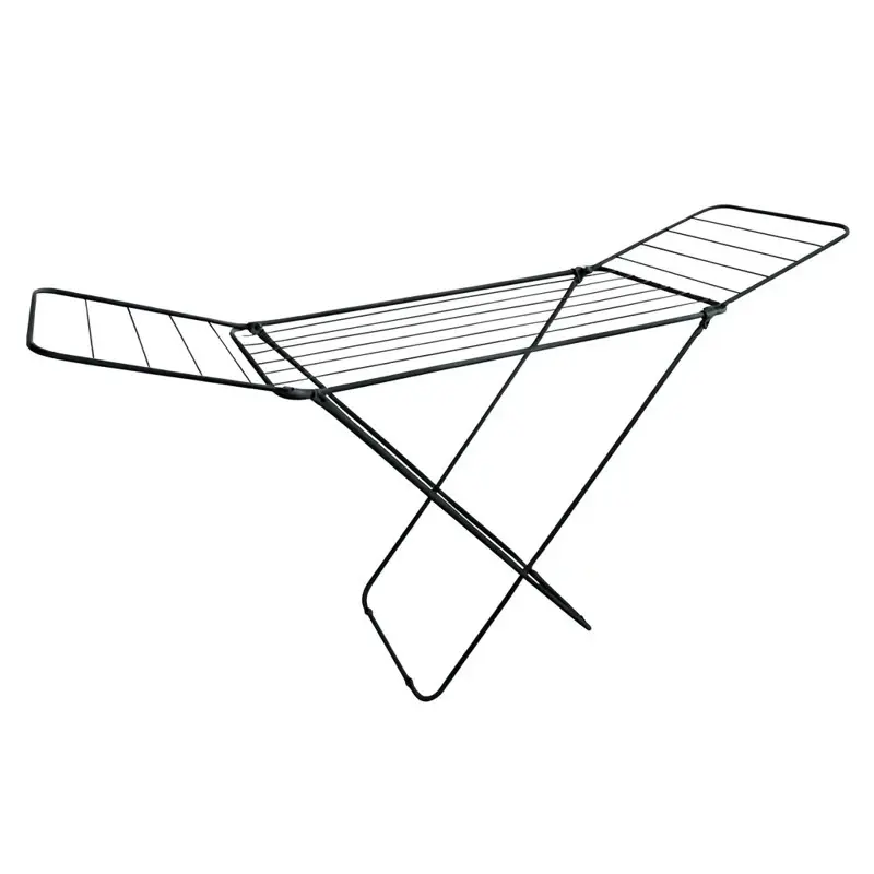Tender plegable de pie con alas, fabricado en acero cubierto con pintura epoxi resistente a la humedad. Posee tacos plásticos en la base para evitar que se oxide y que raye el piso.