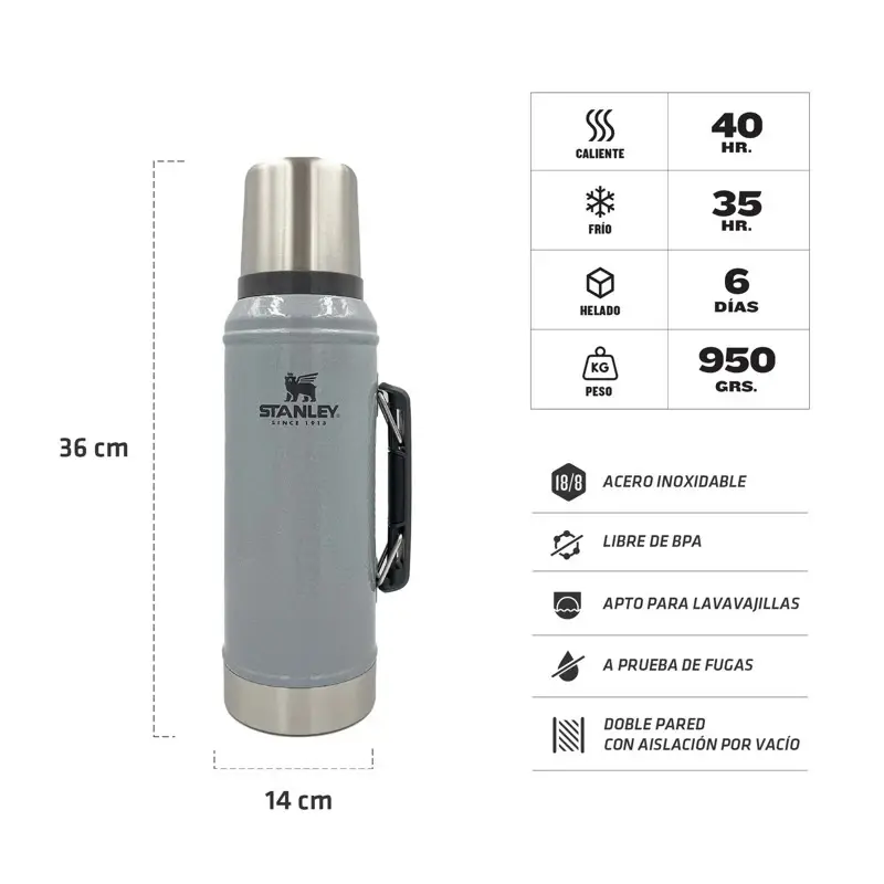Termo Stanley Clasico 950Ml Con Manija - Silver