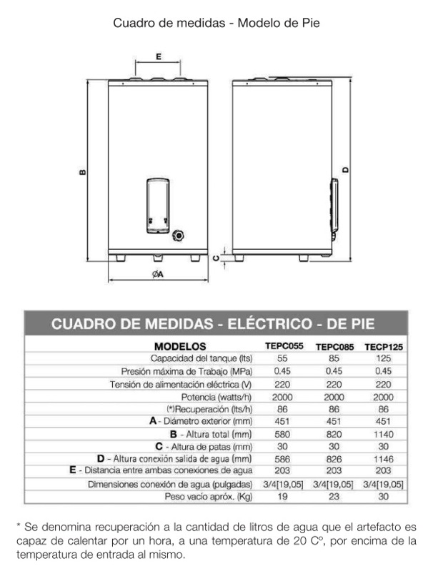 Termotanque Electrico de Pie 85 Lt Saiar by Rheem Superior