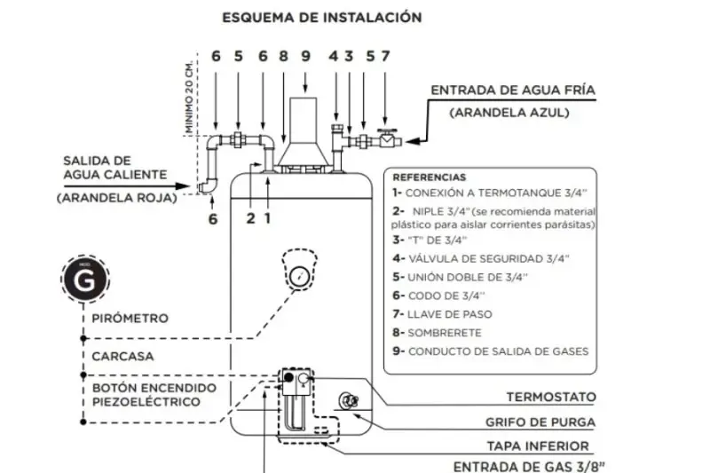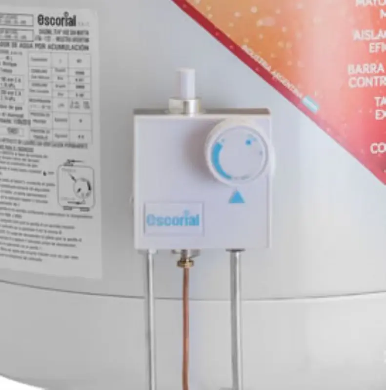 CaracterísticasTermocupla de seguridad, controla todo el tiempo que la llama este encendida, en caso contrario corta el suministro de gas. Protección contra corrosión, eliminan las posiciones de óxidos que causan las picaduras y posteriores pinchaduras del tanque. Extra duración del quemador, por estar construido en chapa con recubrimiento específico para altas temperaturas, extendiendo así su vida útil.Confort y capacidadEl termotanque Escorial cuenta con sistema de conexión multigas, esto quiere decir que puede ser utilizado tanto con gas natural como con gas envasado. Su capacidad es de 43 litros y es de carga superior.