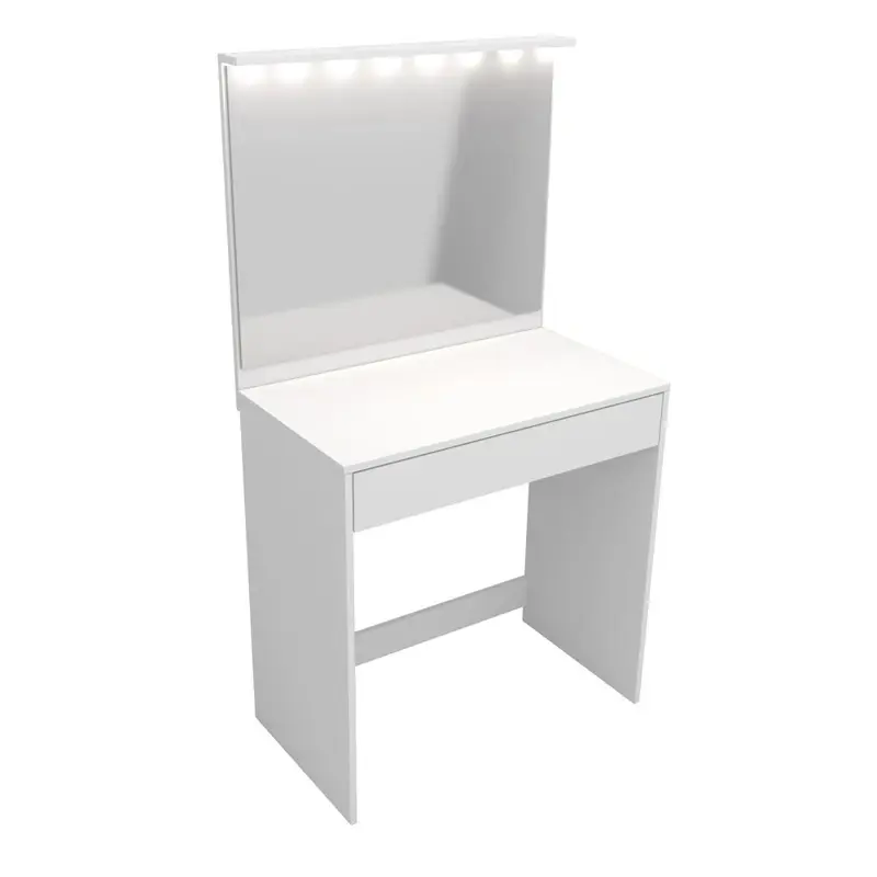 TOCADOR MAQUILLADOR CON ESPEJO CAJON Y LUZ LED MELAMINA BLANCO