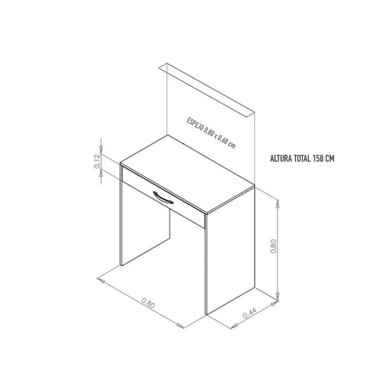 TOCADOR MAQUILLADOR CON ESPEJO Y CAJON MELAMINA BLANCO