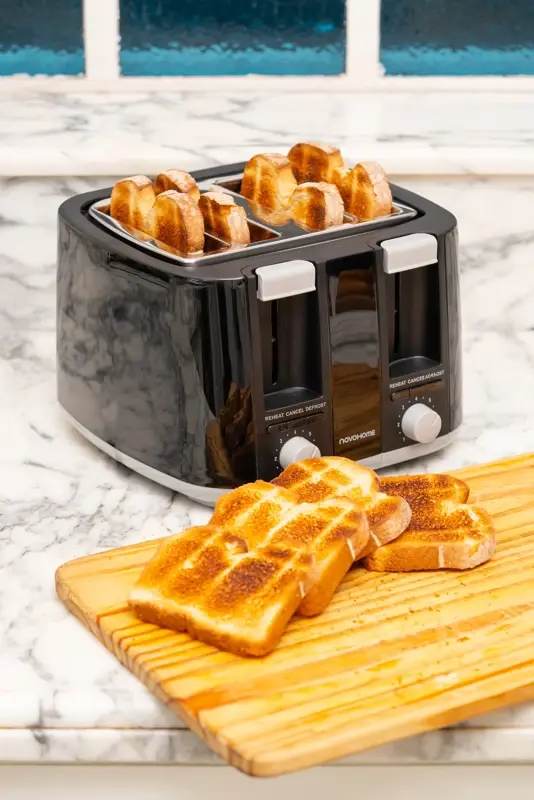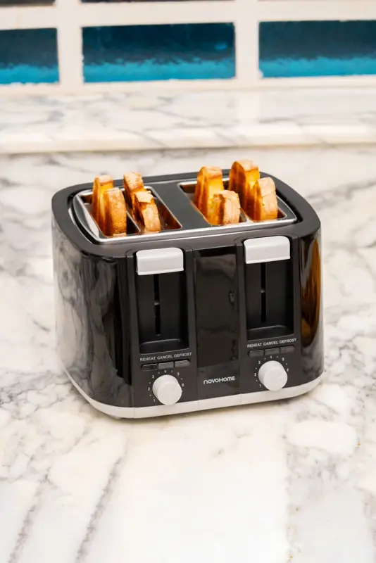 NOVOHOME TOSTADORA SKU: NH-TO040 TOSTADORA 4 REBANADAS Especificaciones técnicas Paredes frías al tacto Función Descongelar, Recalentar y Cancelar Luz indicadora LED azul Control de tostado variable de 7 niveles Bandeja para migas deslizable Sistema de centrado automático Almacenamiento de cable debajo de la base Pies antideslizantes de goma Voltaje: 220-240v-50/60Hz Potencia: 1500 watts *LAS IMÁGENES SON DE CARÁCTER ILUSTRATIVO* ********************************************************************************************************* 12 MESES DE GARANTIA CON LA MARCA